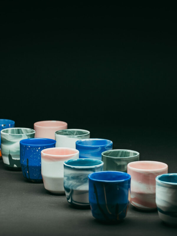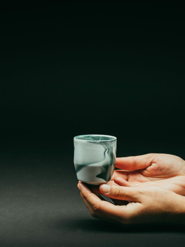 Tasse en porcelaine ou grès émaillée transparent brillant.